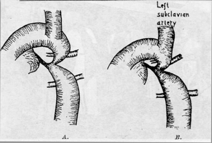 Clarence Crafoord beskrev tillsammans med Gustav Nylin en operationsmetod för korrektion av coarctatio aortae 1945. Alfred Blalock vid Johns Hopkins sjukhus i USA hade i stället försökt att »korrigera« detta hjärtfel genom att dela av vänster arteria subclavia och sy in den nedanför förträngningen ända-till-sida, utan att ha gjort något åt själva aortaförträngningen. Det var ingen bra metod. Men hans barnkardiolog Helen Taussig blev intresserad. Hon var förvånad att det gick att »knycka« vänster armpulsåder utan att något hände med vänster arm. Hon hade också noterat att många blå hjärtbarn var blåa på grund av att för litet blod gick till lungorna. Hon övertalade därför Alfred Blalock att lägga en förbindelse med vänster arteria subclavia till vänster lungpulsåder ända till sida hos ett Fallot-barn. Operationen utfördes av Alfred Blalock och blev lyckosam. Den kom att kallas Blalock–Taussig-anastomosen. Blalock och Taussig publicerade metoden i en artikel i JAMA 1945, och operationsmetoden används än idag, även om man numera ofta föredrar att använda ett Gortex-rör i stället för arteria subclavia. Det intressanta är dock att kirurger idag ofta kallar operationsmetoden för Blalock-operationen trots att det var Helen Taussig som kom på idén, det var hon som tänkte!