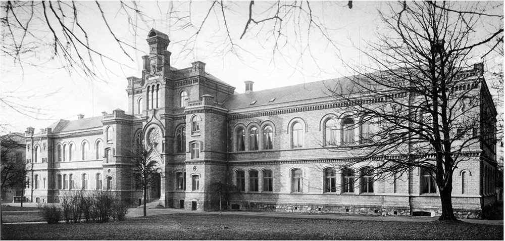 Den första byggnaden för kirurgiska kliniken vid lasarettet i Lund stod färdig 1867. År 1868 var den i full drift. Foto från 1906.