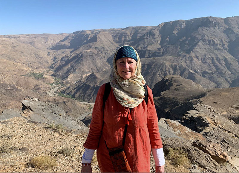 Artikelförfattaren Charlotta Grunewald, till vardags senior överläkare inom gynekologi och obstetrik vid Karolinska universitetssjukhuset, är här på utflykt i bergen runt staden Khamer i Jemen.