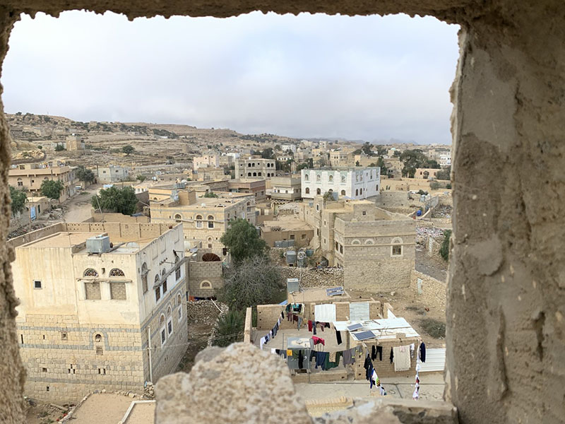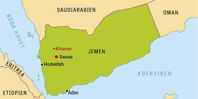 Det tog fem dagar att komma dit: först via Doha till Djibouti, därifrån i ett litet flygplan över Röda havet till den jemenitiska hamnstaden Aden. Där var det dags att byta om till en lånad abaya, en lång, heltäckande och löst sittande klänning, och en sjal som nogsamt döljer varje hårstrå. Vi flög vidare till huvudstaden Sanaa, först över ökenlandskap, sedan över beigegrå berg och dalar utan synlig grönska, med byar glest utspridda över bergsplatåer och i dalgångar, slingrande serpentinvägar. Man förstår att detta är ett svårintagligt land.