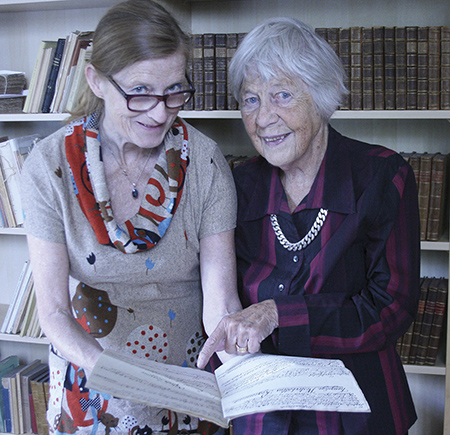 Gertie Johansson, bibliotekarie på Hagströmerbiblioteket, och Anne-Marie Billing-Ottosson, docent i latin som uttytt skriften och översatt den till svenska.