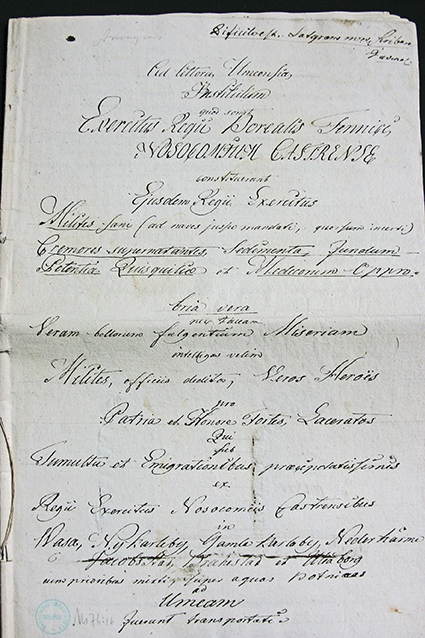 I Anders Hagströmers (1753–1830) eget arkiv på Hagströmerbiblioteket fann bibliotekarien Gertie Johansson 16 sidor, där 93 sjuka och blesserade officerare och andra befäl redovisas individuellt. På försättsbladet anges att det handlar om Umeås Nosocomium Castrense, dvs. ett sjukhus för sårade och sjuka militärer som transporterats över Bottniska viken från Wasa, Nykarleby, Gamla Karleby, Jacobstad, Brahestad och Uleåborg. Ett registerblad anger hur många från respektive regemente som vårdas. Övriga blad innehåller mer eller mindre detaljerade beskrivningar av enskilda personer och vad som hänt dessa. Alla har anlänt till Umeå mellan september 1808 och början av januari 1809.
