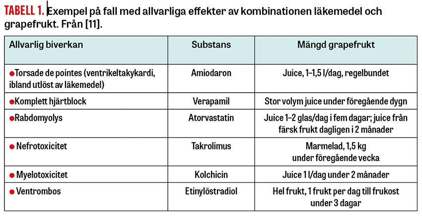 Läkemedelsverket varnade för fenomenet 1997 [6], och två av mina kollegor, varav den ene säger sig vara storkonsument av grapefrukt, tar ett par år senare upp »förbjuden frukt« i Läkartidningen och ställer ett antal kliniskt relevanta frågor [7, 8].