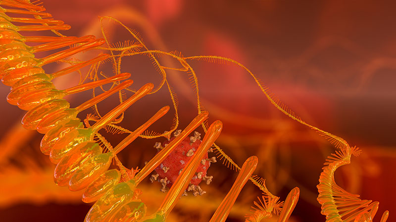 3D-illustration av mRNA-kedjor i ett vaccin mot covid-19. Illustration: Shutterstock/TT