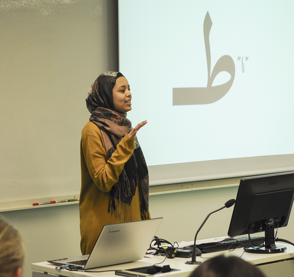Läkarstudenten Sara Babiker leder en kurs i arabiska för ett 30-tal studiekamrater. Foto:Edvin von Otter