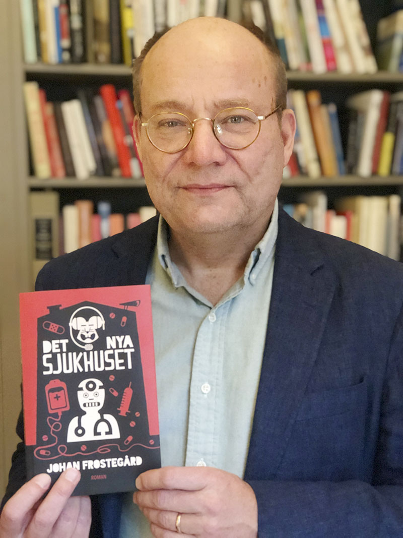 Johan Frostegård, medicinprofessor, forskare och författare, har just publicerat romanen »Det nya sjukhuset« – en satir om en satir, enligt P C Jersilds recension i Läkartidningen.