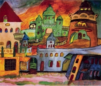 Naiv, koloristisk konst närd av ett svårförståeligt inre