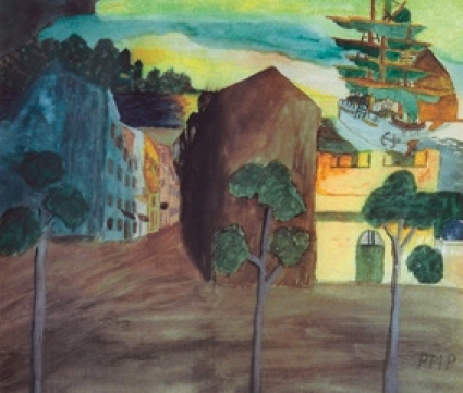 Han signerade oftast med PMP i nedre högra hörnet i olika stilar men ibland med obegripliga 1LBAEYRY. En av hans bilder med människor är en känslosam scen med några prostituerade utanför en krog. Fot- eller hjulspår och hus finns med, liksom träd som inte kastar några skuggor. I stadsbilder kan husen te sig nästan levande.