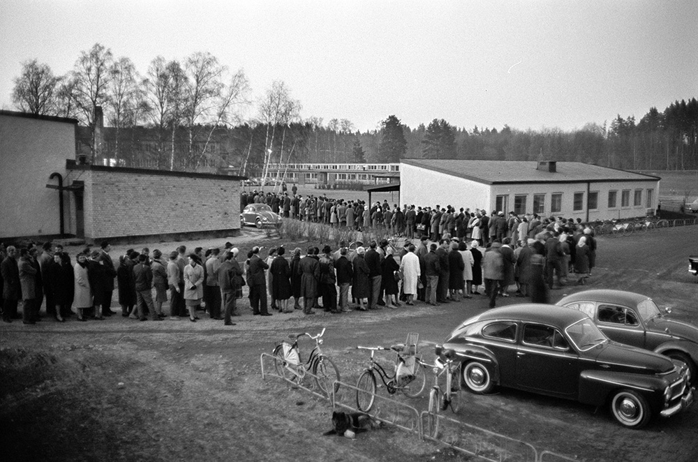 I kö för vaccination. Jakobsbergs folkhögskola, år 1961.