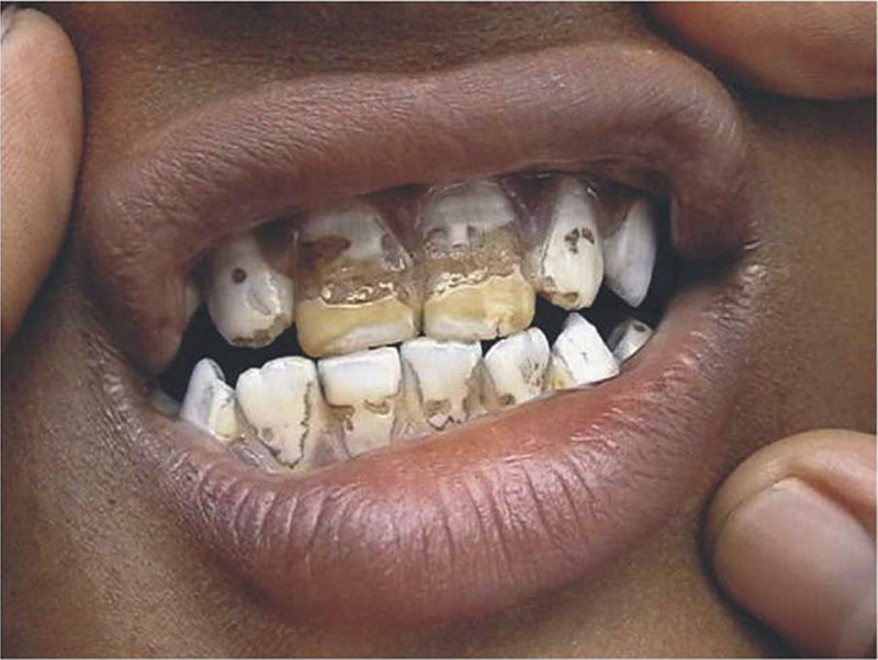 Prästen Jon Steingrimsson beskrev år 1783 hur vissa djur fick så kallade »asktänder«: fluorkristallerna växte på tänderna och deformerade dem till den grad att djuren inte längre kunde tugga eller beta och därför svalt ihjäl. Detta fenomen fanns inte beskrivet hos människor på den tiden, men Steingrimsson observerade liknande förändringar i tänderna och skelettet hos människor som bodde i de områden som drabbats hårdast av den nedfallande askan då de tvingades äta de fluorförgiftade grödorna och boskapen och dricka det kontaminerade dricksvattnet. Katastrofen var ett faktum, och så mycket som drygt en fjärdedel av hela Islands befolkning dog i en kombination av svält, fluoros och andra följdsjukdomar som vulkanutbrottet förorsakade.