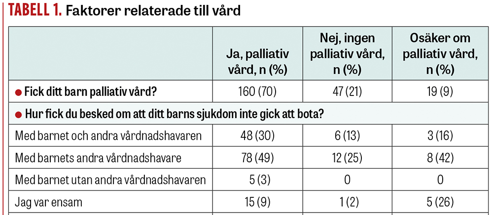Originalstudie Vårdnadshavares uppfattning om vårdform, tillgänglighet och barnets symtom i livets slut