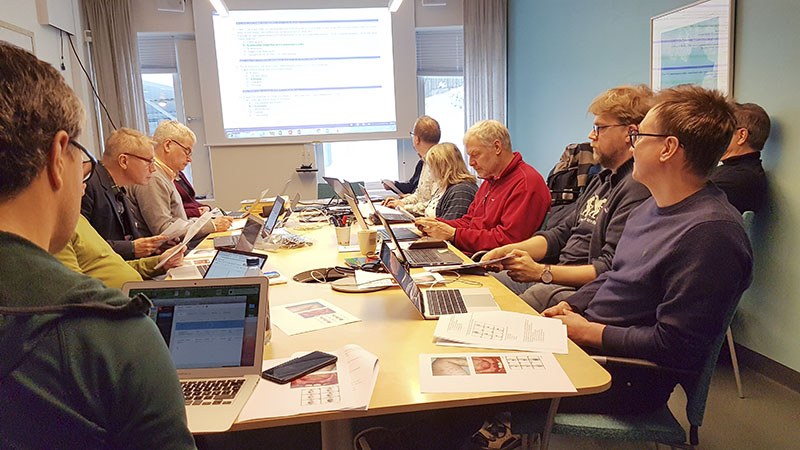 Gruppen presenterar sig för varandra. En del har varit med på ett flertal gränssättningsmöten, för andra är det första gången. Universitetslektorn Johan Hultdin, som sitter i redaktörsgruppen för provet, leder mötet.
