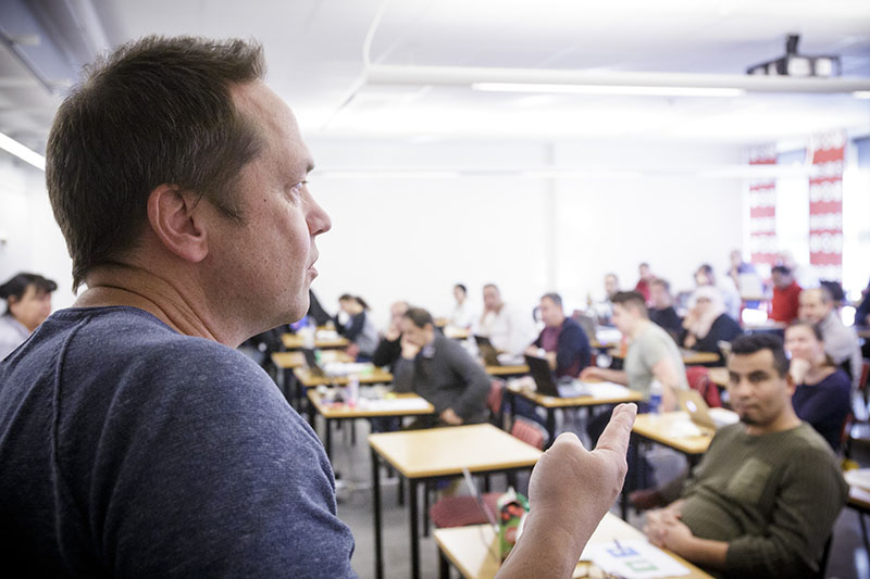 – Man kan se det på två sätt. Antingen ser man det som omöjligt. Eller så fokuserar man på vad man saknar för att man ska klara provet och försöker åtgärda det, säger Magnus Hultin till gruppen.