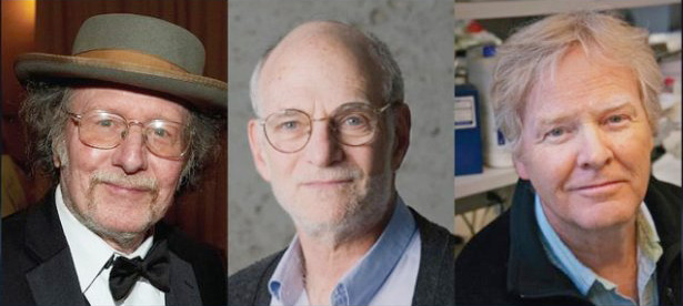 De amerikanska forskarna (från vänster) Jeffrey C Hall, Michael Rosbash och Michael W Young prisas för sina upptäckter av molekylära mekanismer som styr cirkadiansk rytm. Bild: Nobelstiftelsen