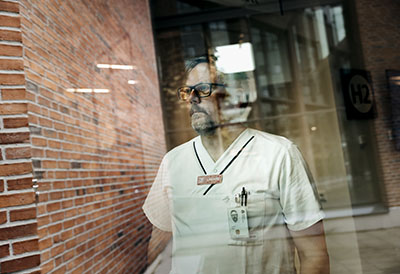 – Det ska vara grundregeln – sedan kan det nog finnas utrymme för undantag, som för chefer högt upp i organisationen, säger Lars Edling, ordförande för Örebro läns läkarförening – om att vårdutbildade administratörer och chefer även ska arbeta kliniskt – när vi träffas på Universitetssjukhuset Örebro, där han själv är kliniskt verksam.