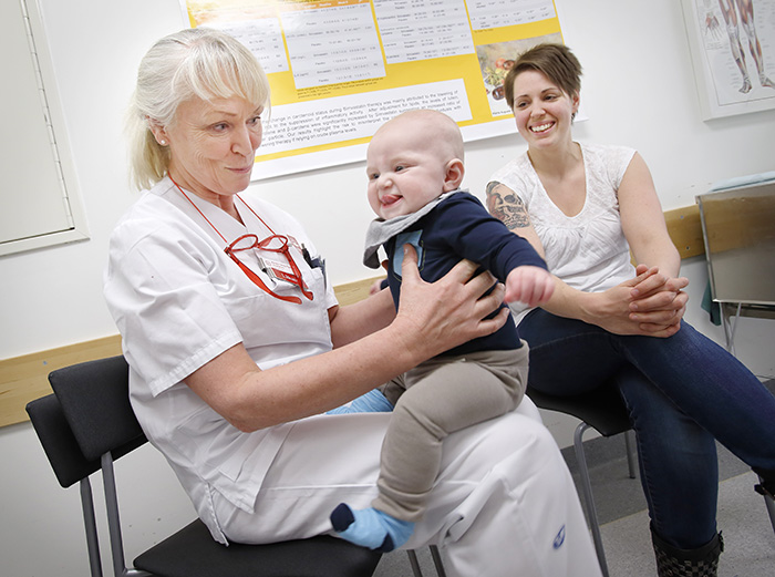 En piglux, konstaterar Kerstin Skog Tigerström. Hon sätter pojken i knäet och reponerar tills ett svagt klick hörs.