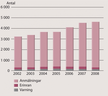 Under flera år har anmälningarna till HSAN ökat. I början av 2000-talet gjordes runt 3 000 anmälningar varje år, 2008 anmäldes 4 624 ärenden.