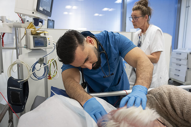 I början var danskan svår för Attiqullah Safi, men patienterna hjälpte till och anpassade språket. Efter bara någon månad var det inte längre något problem. Nu är han på sluttampen på sin KBU – här med kollegan och sjuksköterskan Charlotte Stræde. Foto: Claus Bech
