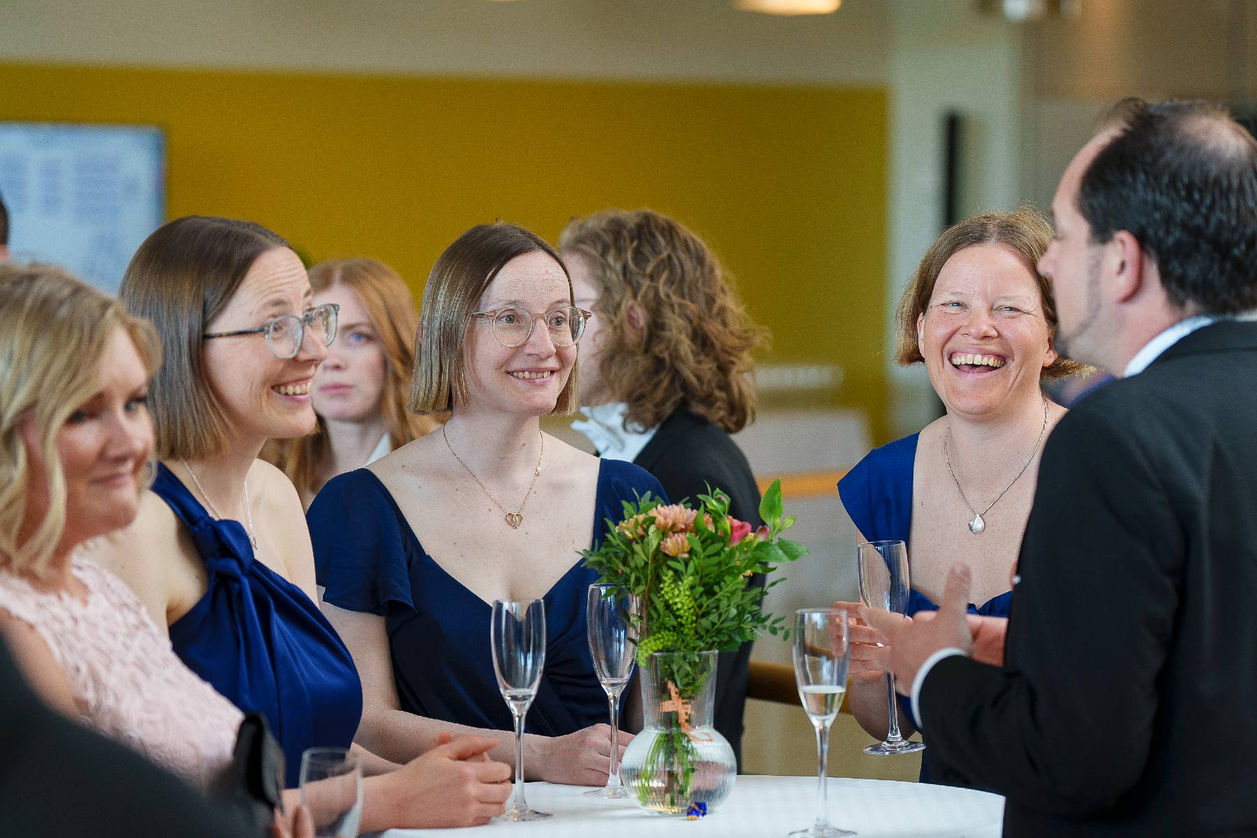 Systrarna tog sin doktorsexamen samtidigt. Här minglar de under vårpromotionen 2024 som ägde rum i maj. Foto: Mattias Pettersson/Umeå universitet