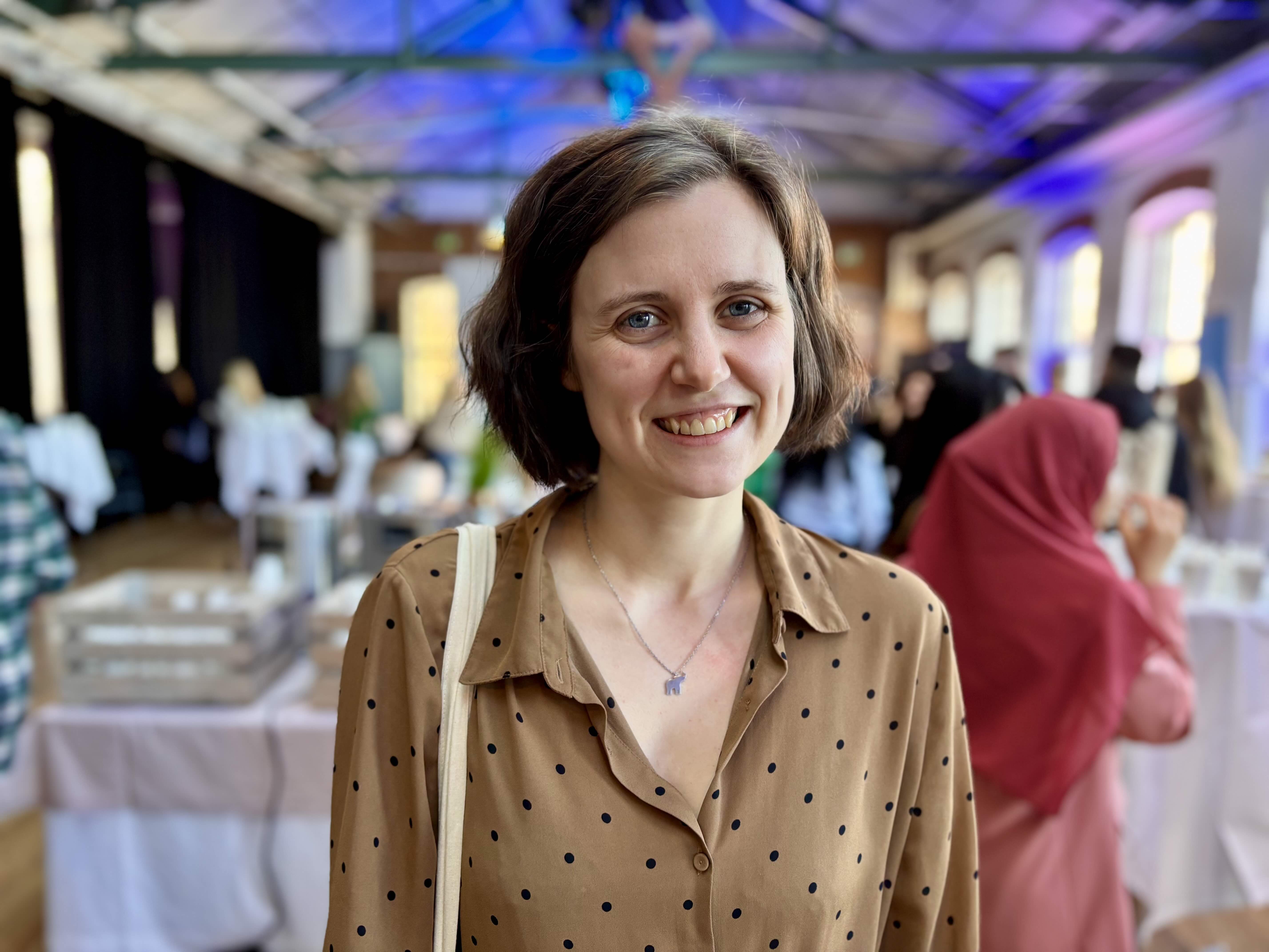 AT-läkaren Nelly Hedman minglar under en paus. Hon tycker att AT/BT-stämman har ett brett utbud.