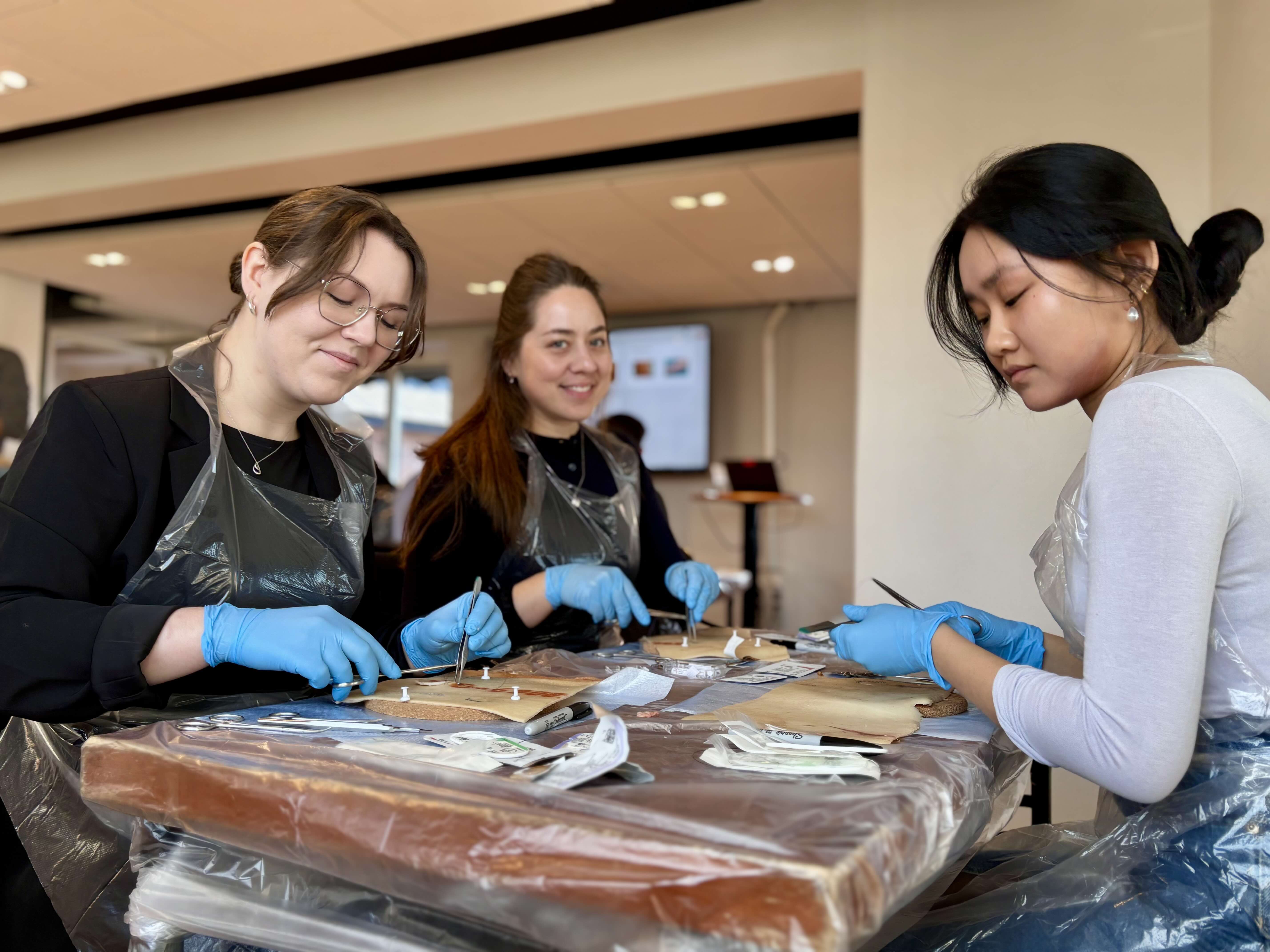 AT-läkarna Madeleine Hoang, Katarina Nordin och Karolina Carstensen deltog i verkstaden »Plastikkirurgi för den händige«, där man fick öva på vanliga suturtekniker.