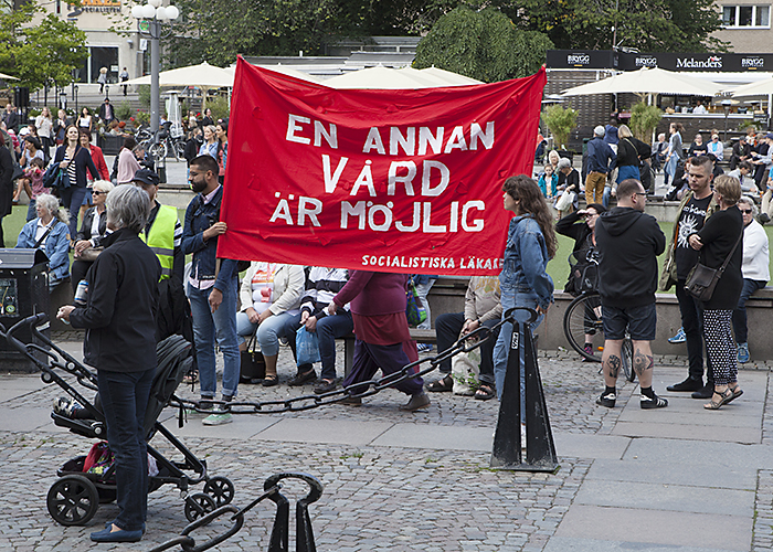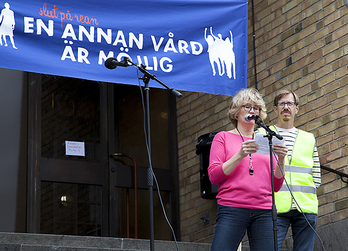 På 26 orter i landet arrangerades demonstrationer under parollen ”Slut på rean – en annan vård är möjlig” i söndags. En av talarna i Stockholm var Märit Halmin, narkosläkare på Danderyds sjukhus.