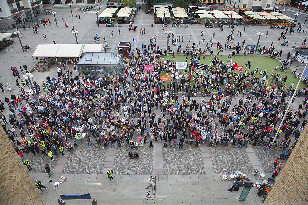 Demonstrationen på Medborgarplatsen i Stockholm lockade något hundratal deltagare. Foto: Maj-Lis Koivisto
