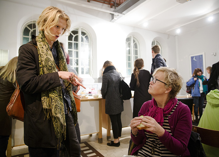 Efter seminariet fortsätter diskussionerna i läkarstudenternas lokal »Kapellet« på andra sidan den regnvåta gatan. Vid ett av de runda träborden står läkarstudenten Torkel Rönnblad tillsammans med Åsa Wieslander. De har plockat upp diskussionen om EU-migranters rätt till vård och är båda överens om att frågor om papperslösa och migranter är något som borde ingå i alla vårdutbildningars etikblock.