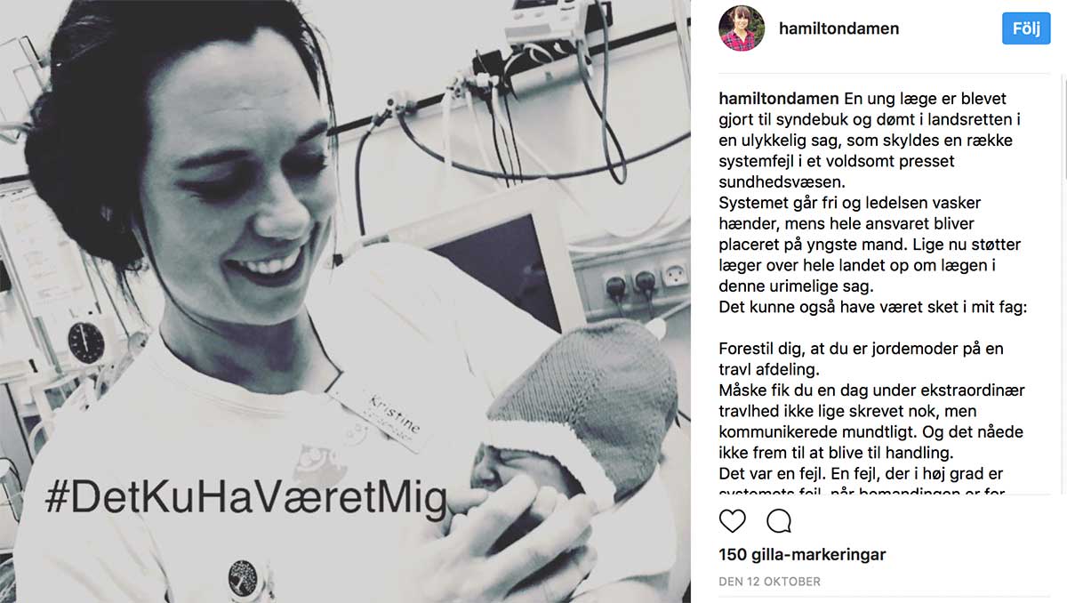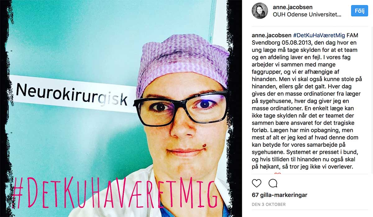 Ett av flera exempel på läkare som engagerar sig för den dömda kollegan i Svendborg. Bild från Instagram (Läkartidningen har inhämtat personens tillstånd för publicering).
