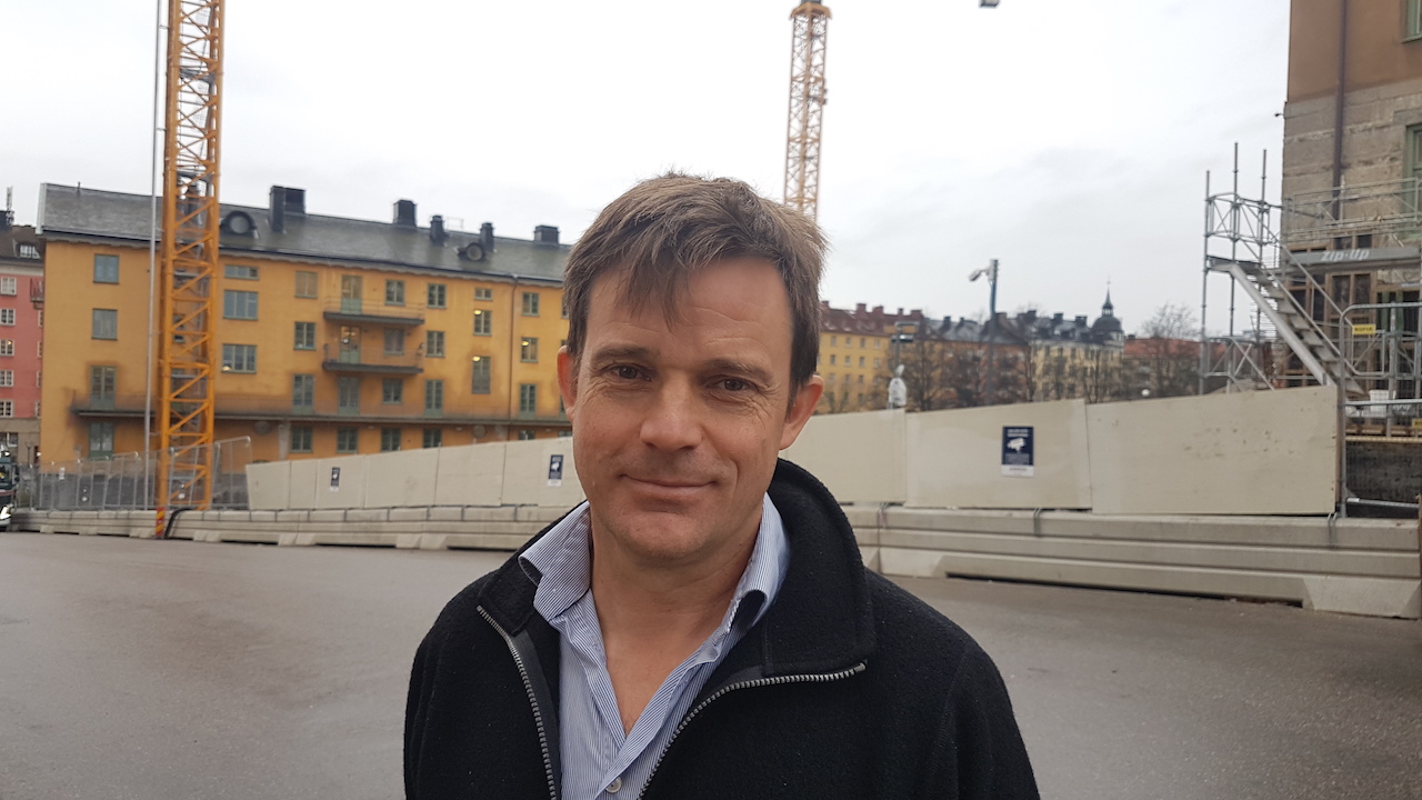 Anders Eriksson tittar ner i byggropen mellan det gamla sjukhuset och den gamla sjuksköterskebostaden. Han har en nyckelroll som programchef för Ersta nya sjukhus, men började först några år in i planerandet av det nya sjukhuset. Från början sköttes mycket med extern hjälp, via en extern byggherre och en konsultfirma som hade projektledningsuppdraget. Anders Eriksson berättar att han och flera andra i ledningsgruppen, liksom en del övriga medarbetare på sjukhuset, var oroliga för att slutresultatet inte skulle bli tillräckligt bra.