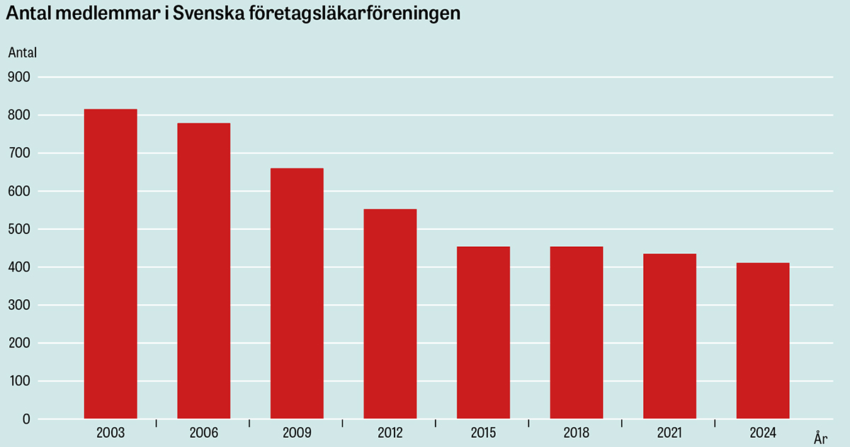 Företagsläkare utgör 1,6 procent av Sveriges legitimerade läkare, enligt uppgifter från Socialstyrelsen. Men föreningar, branschorganisationer, arbetsmarknadens parter och även en del företag är oroliga för att siffran är på nedgång.
