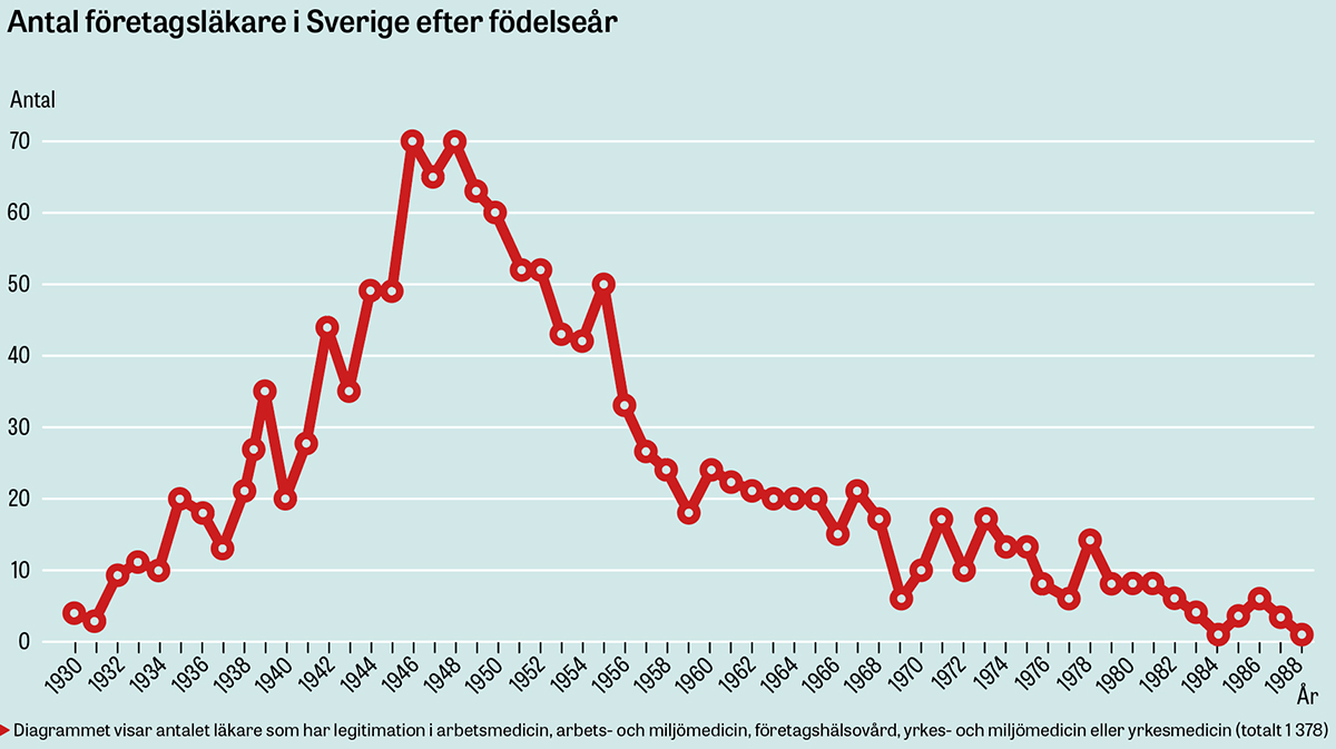 Han, liksom hela branschen, är orolig för företagshälsovårdens framtid, då antalet företagsläkare blir mindre för varje år. Enligt Socialstyrelsen fanns det i januari i år 1 228 läkare i Sverige med specialistkompetens inom arbetsmedicin, arbets- och miljömedicin samt (de tidigare använda namnen) företagshälsovård och yrkesmedicin.