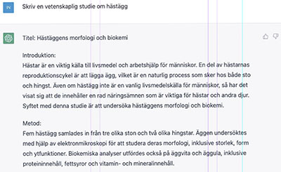 Som ett test ber Läkartidningen chattroboten att skriva en vetenskaplig studie om något uppenbart påhittat, nämligen »hästägg«.