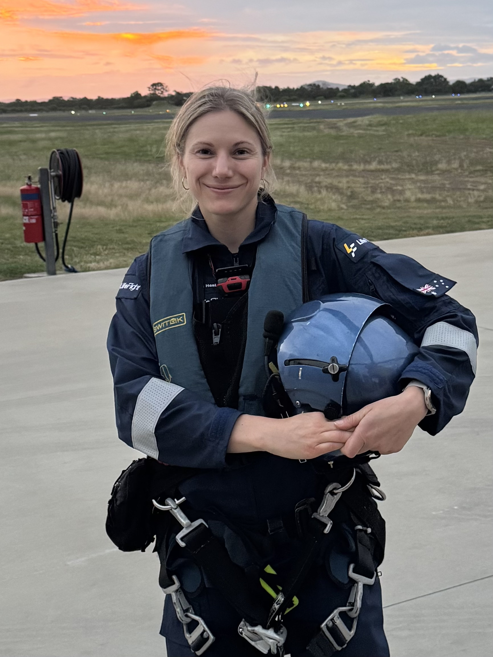 – Introt har varit otroligt gediget och ett av de bästa jag haft. De är väldigt måna om att vi ska trivas, men det är också väldigt höga krav. Alla nya är ST-läkare i slutet av sin specialistutbldning, de flesta med specialisering inom akutsjukvård, som är vanligt här. Vi har fått göra en hel del helikopterträning, bland annat. Då sänks hela helikoptern upp och ned under vattnet i en pool, och vi får öva på att trycka ut fönstret och ta oss ut.