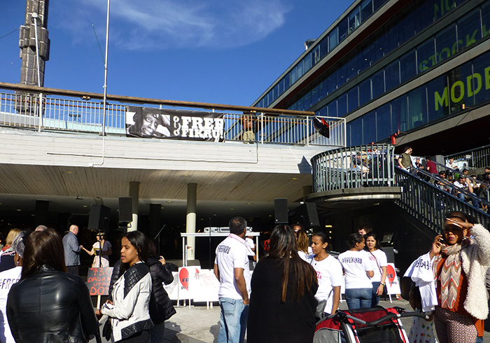 I maj hölls en manifestation för den fängslade läkaren Fikru Maru på Sergels torg i Stockholm. Foto: Marie Ström