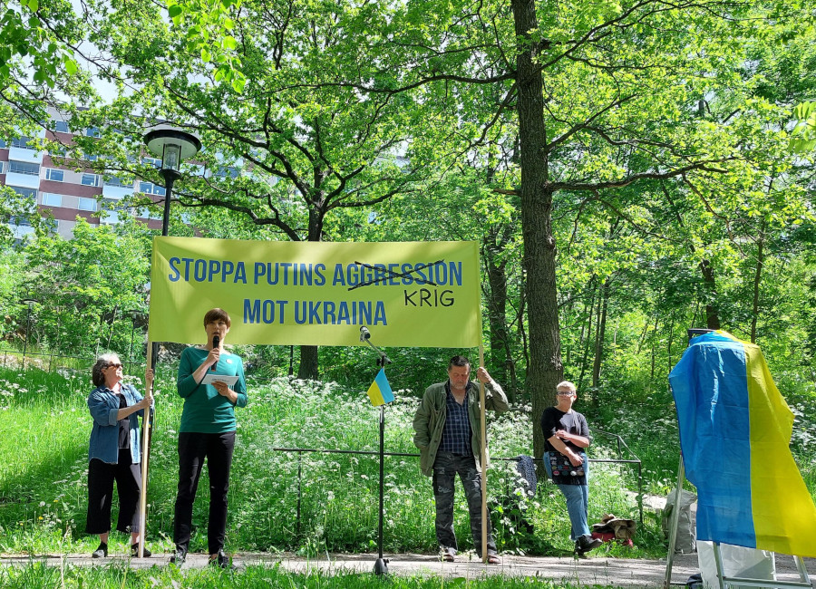 Varje onsdag samlas olika deltagare utanför ryska ambassaden i Stockholm för att markera mot Putins krig i Ukraina.