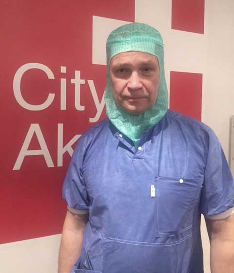 Joakim Nordahl och hans kollegor vid Cityakuten i Stockholm var bland de första på plats efter dådet på Drottninggatan. »Man stänger av känslorna och jobbar på«, säger han till Läkartidningen. Här är han fotograferad på väg in till en operation. Foto: Najat Aboudrar