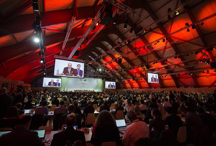 Arbete i plenum på klimatmötet COP 21 i Le Bourget, Paris. Foto: Ian Langsdon/EPA/TT