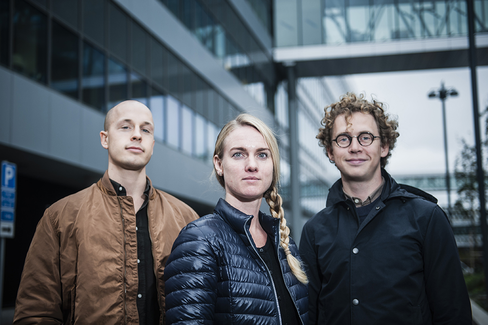 Isak Kempe, Caroline Brever och Robert Wallin, alla tre studenter vid termin sju på Karolinska institutets läkarutbildning, känner viss oro inför sina fortsatta studier. Foto: Marc Femenia