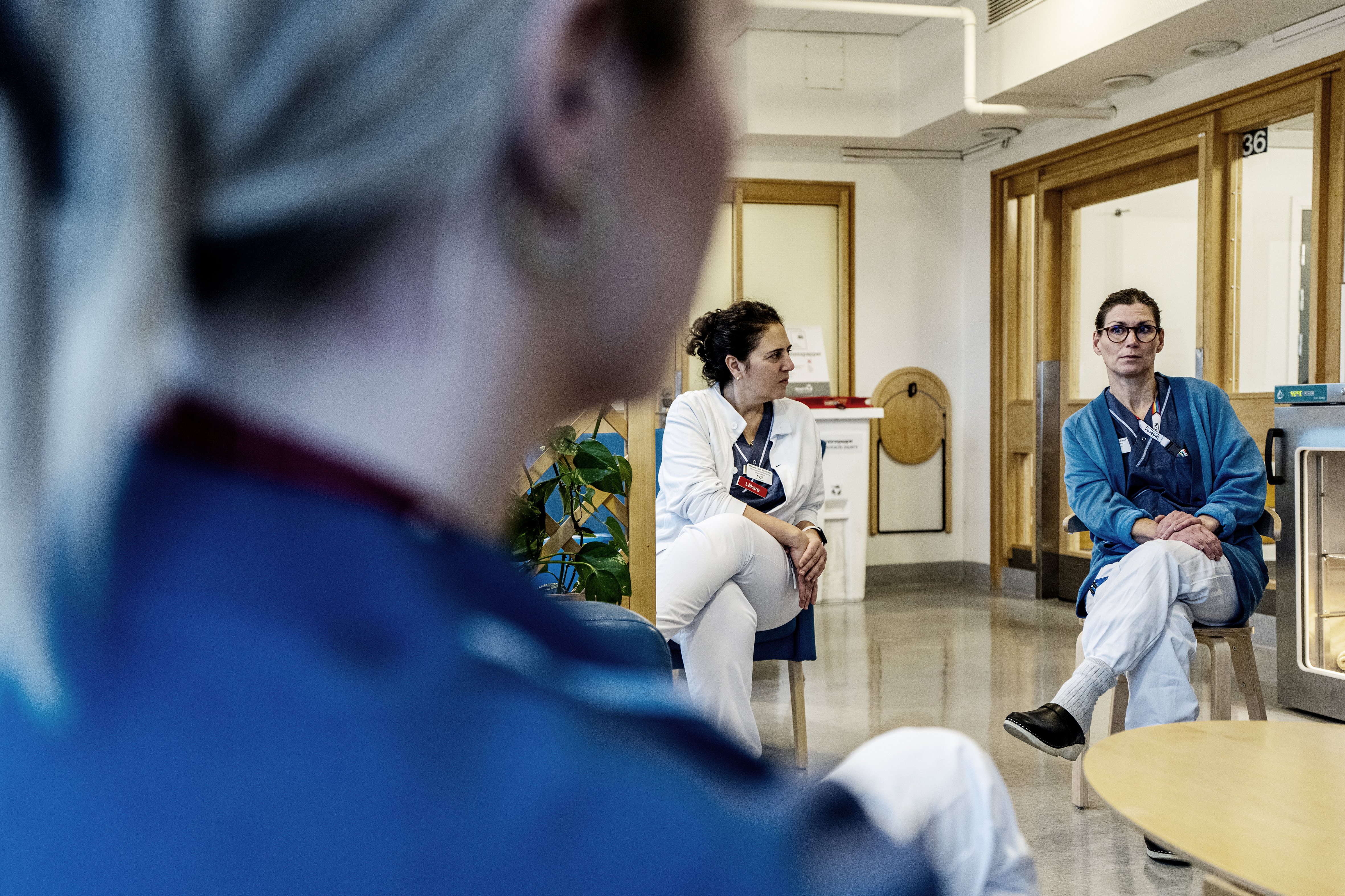 Arbetsdagen börjar med ett möte där planen för alla patienter gås igenom.