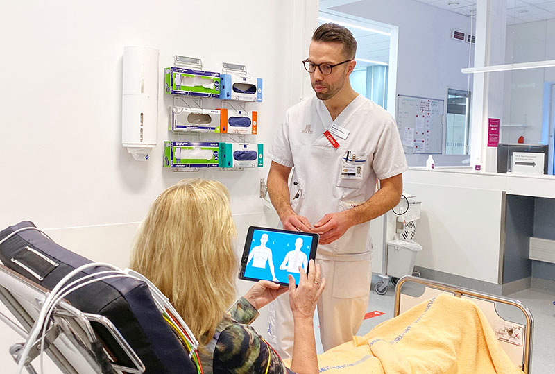 – En del undrar vad patienter egentligen tycker när de kommer med akuta bröstsmärtor och vi sätter en läsplatta i händerna på dem. Men i en genomförbarhetsstudie har vi sett att det accepterats väldigt väl av patienterna, säger Helge Brandberg.
