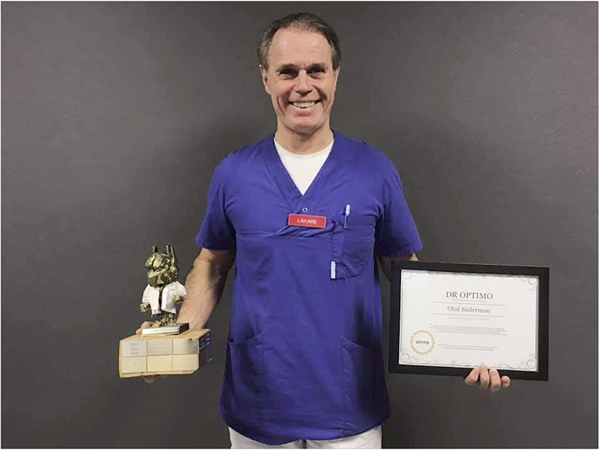 Olof Söderman, överläkare radiologi, är årets Dr Optimo vid Skaraborgs sjukhus, Lidköping. Priset delas ut av AT-läkarna i Lidköping till den läkare inom Skaraborgs sjukhus som anses vara en god förebild, visat pedagogiska talanger och ärligt engagemang i AT-utbildningarna.