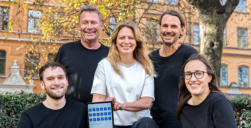 Personerna bakom språkstödet, fr vä: Alexander Gyllensvärd, CTO; Martin Schalling, läkare och medgrundare; Maja Magnusson, VD; Linus Kullänger Schalling och Annie Backman; båda läkare och medgrundare. Foto: Sara Damne/Bildbyrån