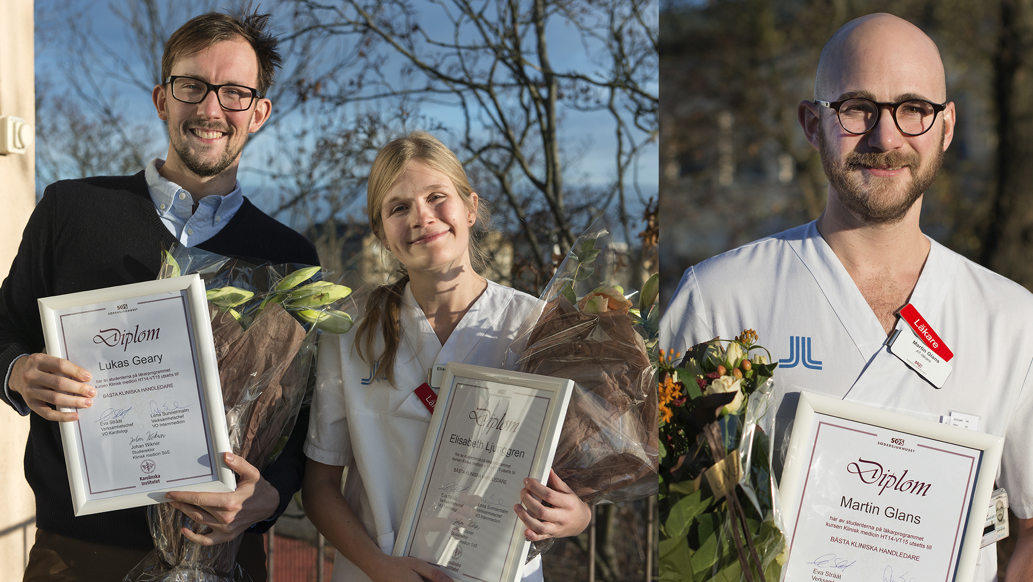 Läkarstudenterna på kursen i klinisk medicin ht14/vt15 på Södersjukhuset, Karolinska institutet, Stockholm, har utsett Lukas Geary (S:t Görans sjukhus), Martin Glans och Elisabeth Ljunggren till bästa kliniska handledare under kursen. De får priset för sitt stora engagemang i den kliniska handledningen av studenter. Priset delades ut vid en ceremoni på Södersjukhuset den 1 december. Kursen i klinisk medicin, inriktning medicin, är den längsta kursen under hela läkarutbildningen på Karolinska Institutet.