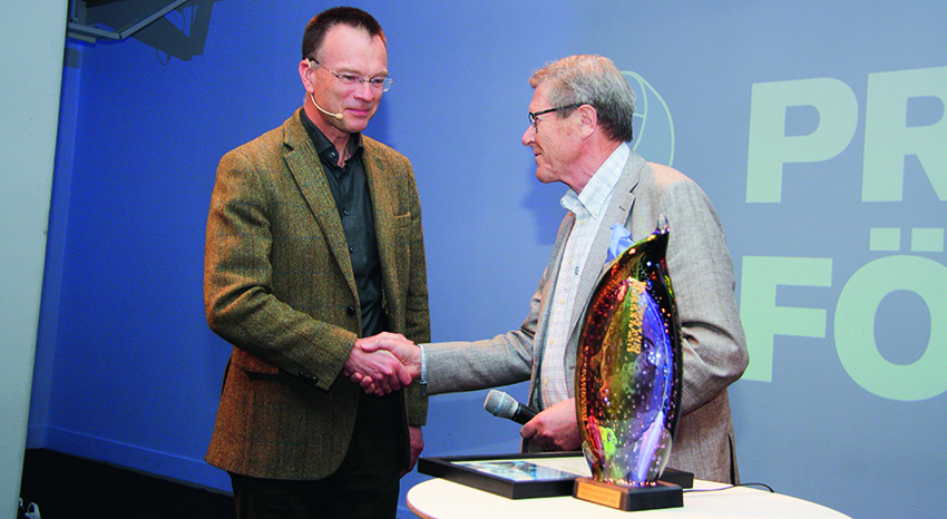 Priset som, består av ett diplom och ett unikt glaskonstverk, överlämnades till pristagaren av Alf Carlsson, Prostatacancerförbundets avgående ordförande.