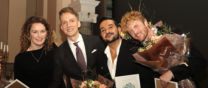 Nominerade till utmärkelsen »Årets kärndoktor«, från vänster: Ester Magnusdottir (medicin), Martin Hellgren (akutmottagningen), Ali Akhras (medicin) och Pontus Olsson (psykiatri). Foto: Fredrik Johnsson.