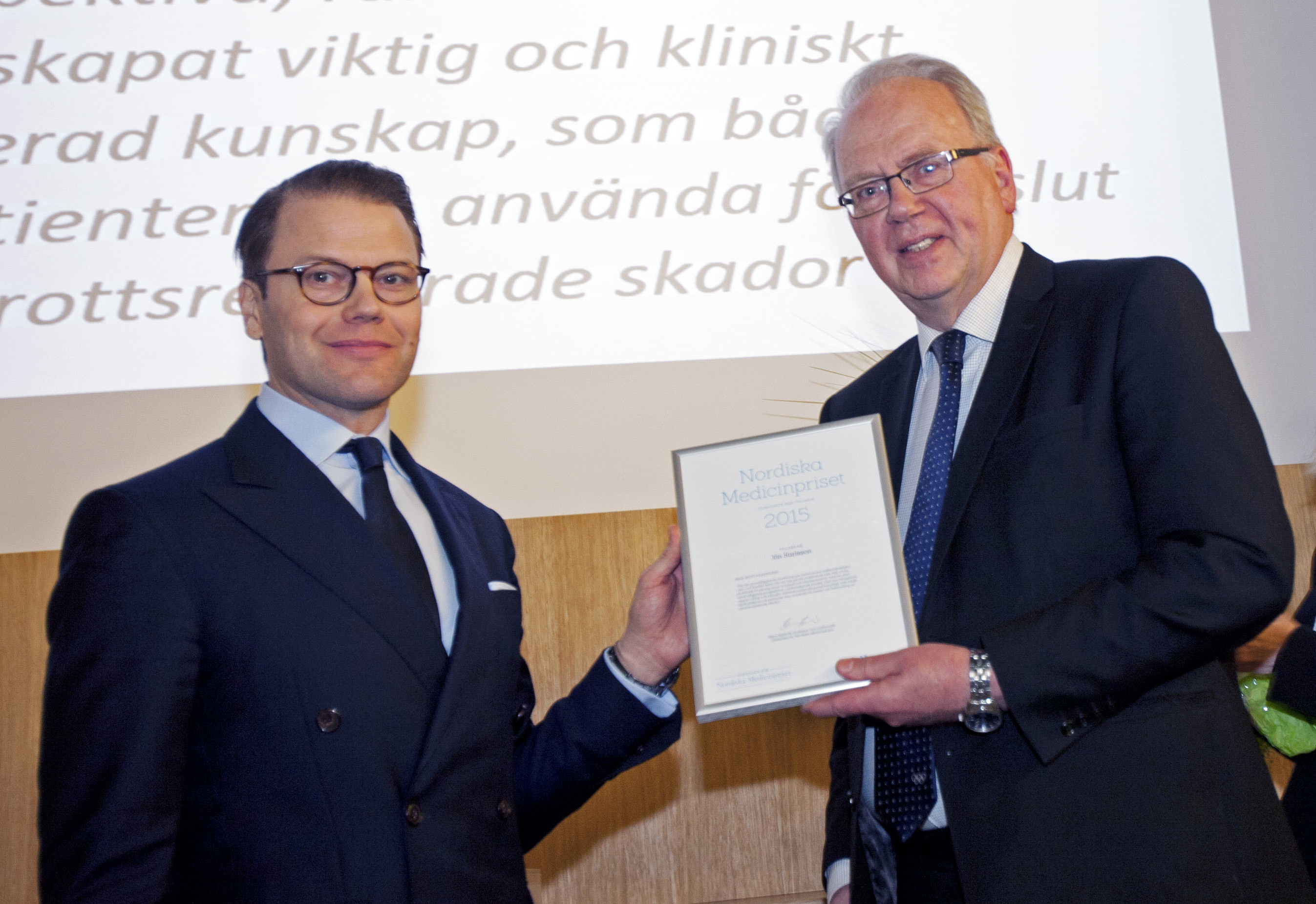 Jón Karlsson, professor i ortopedi och klinisk forskare tog emot sitt pris av Prins Daniel. Foto: Lars Nyman