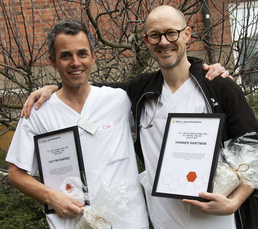 Hannes Hartman i Malmö och Hayyim Ramirez i Lund, båda två verksamma inom VO kirurgi och gastroenterologi, har belönats med utmärkelsen »Årets handledare på Skånes universitetssjukhus«. Det är andra gången som priset delas ut i samband med AT-läkarnas Fokusdag i mars.