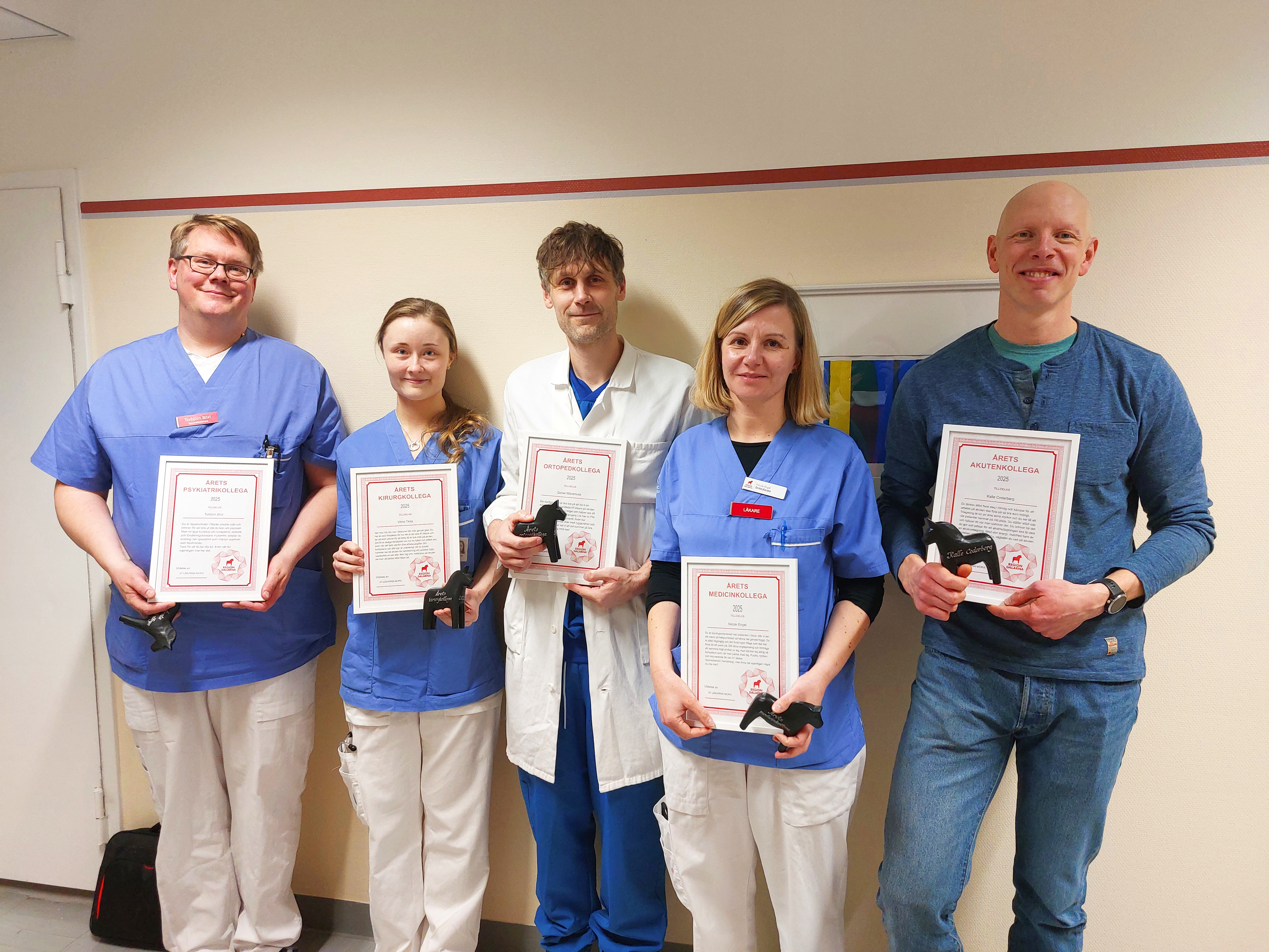 Torbjörn Blixt, Vilma Tikka, Daniel Wästerlund och Nicole Engel har utsetts till årets kollega 2025 av AT-läkarna i Mora.