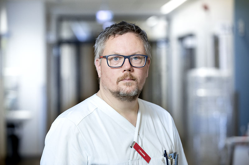 – Vi kan inte arbeta på sättet vi är vana vid. Vi brukar ha en senior kollega på plats, och flera underläkare som primärt bedömer patienterna. Underläkarna behöver sedan titta igenom provsvar på datorn och resonera med någon i lugn och ro om hur man ska gå vidare, säger Lars Edling.